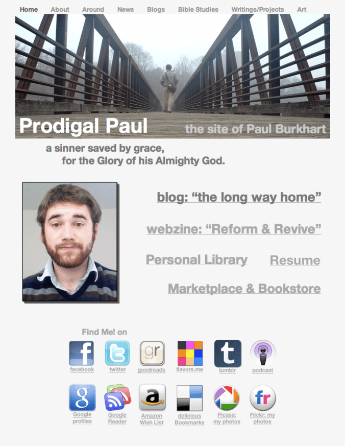 There’s a very little-known (and little-promoted) homepage I’ve had for a couple of years now called “Prodigal Paul”. I’ve been unsure how to use it effectively (along with this site as well), so it’s mainly sat dormant with a bunch of pages of self-promotion that were both unnecessary and annoying (even to me). Further, it was made in Apple’s ill-fated (and oft-maligned) website-building program called iWeb, so I’ve always sort of hated the look.