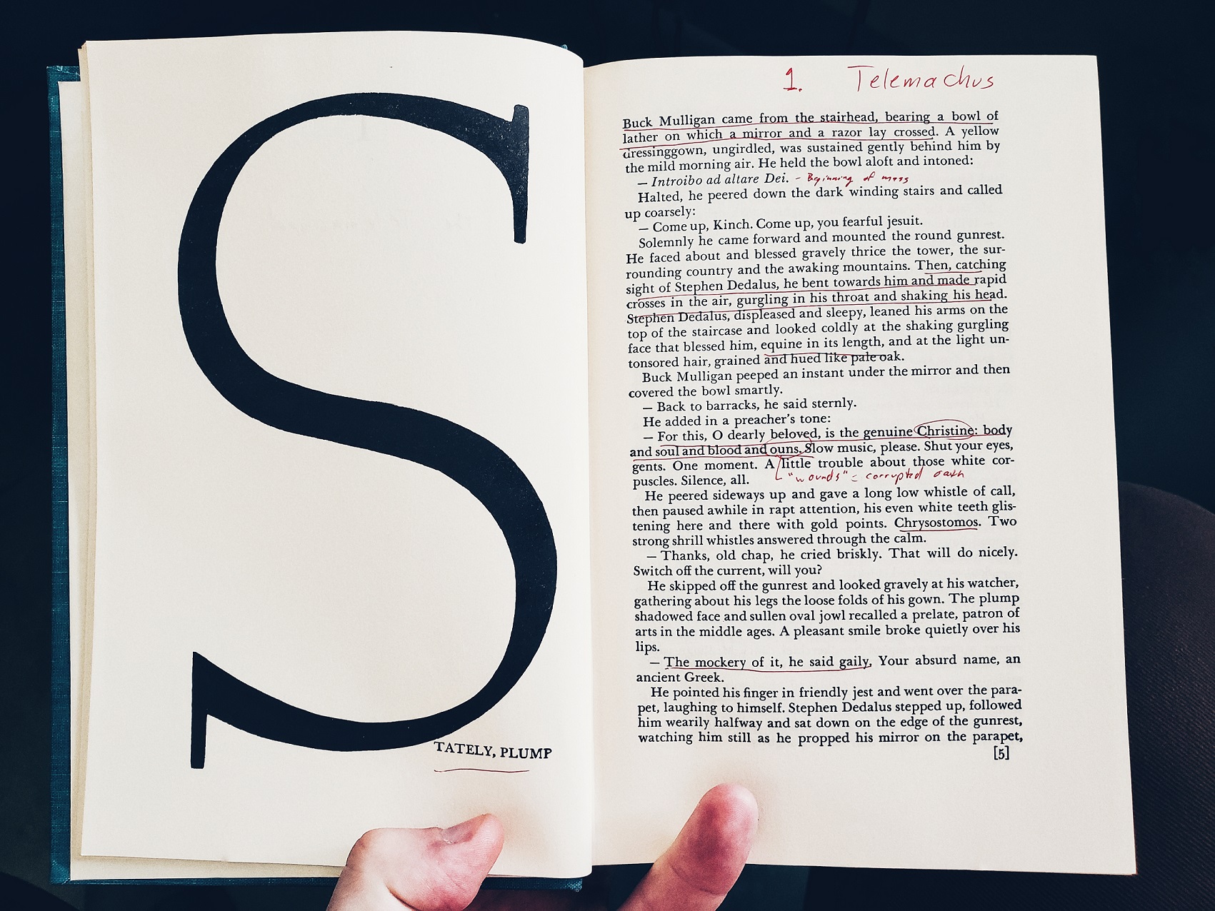 So don’t let this book’s reputation scare you off. It moves at a playful clip. It saunters, with the occasional little skip. Joyce is well aware of how you are experiencing the book and he wants to play with that and send you down paths you don’t yet see coming.