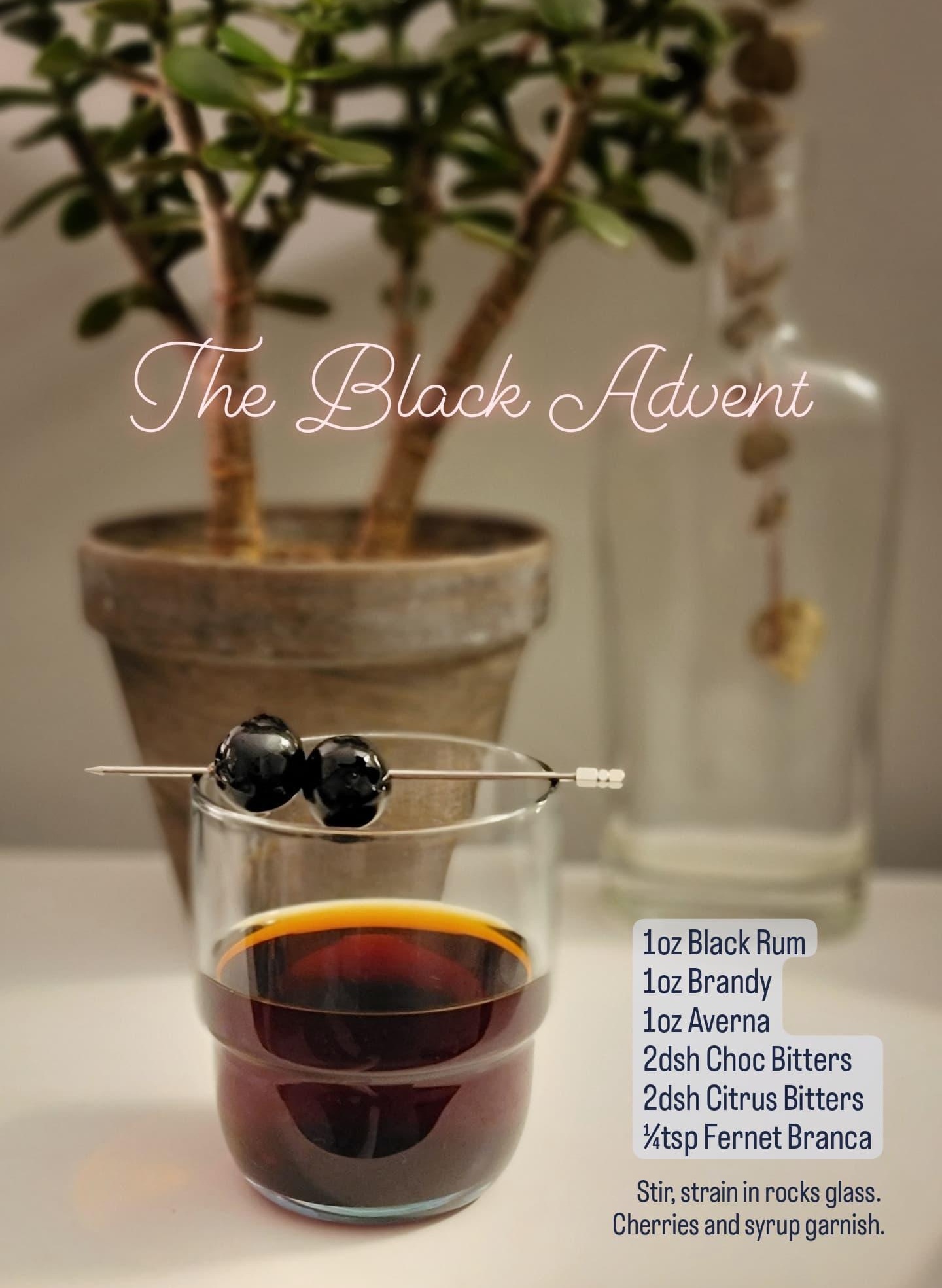We begin the Church Calendar with this drink, “The Black Advent”. You would think that celebrating the same seasons every year could get old and dry, but I find each year brings out specific themes and emphases.
