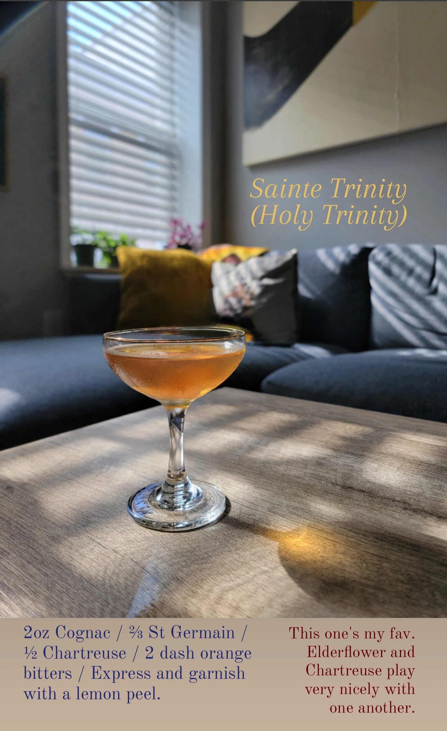 The first Sunday after Pentecost is known as Trinity Sunday. It was created to foster devotion and counter anti-Trinitarian heresies, so some strong, punchy drinks are in order. As I thought of this, I had in mind Michael Foley’s words in the book that inspired my entire holy day cocktail endeavor: