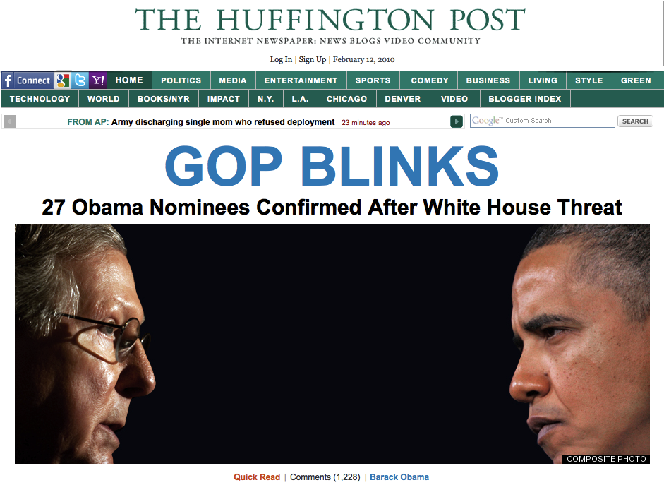 People have been right to criticize the Republicans and their political posturing and obstructionism. Jon Stewart, Rachel Maddow, and others were right to openly mock the way Republicans have seemingly overnight changed their views on historic planks of their platform just because Obama was putting forward those ideas. Obama was correct to plead with them with calm, reasoned explanations on how they were politically shooting themselves in the foot in the long term and freezing the work that needed to get done in this country. It was right to speak of Republican Senators that had absurd and asinine holds on Obama’s nominations as holding the government “hostage”. In short, it has been right to describe Republicans as “obstructionist”, and not for principle, but for politics. I personally resonate more with historic “conservative” visions of the government, but I have been disgusted by the abhorrent politicking that Republicans have been doing merely in the name of re-election. As Obama put it, far more concerned with their own job security than ours.