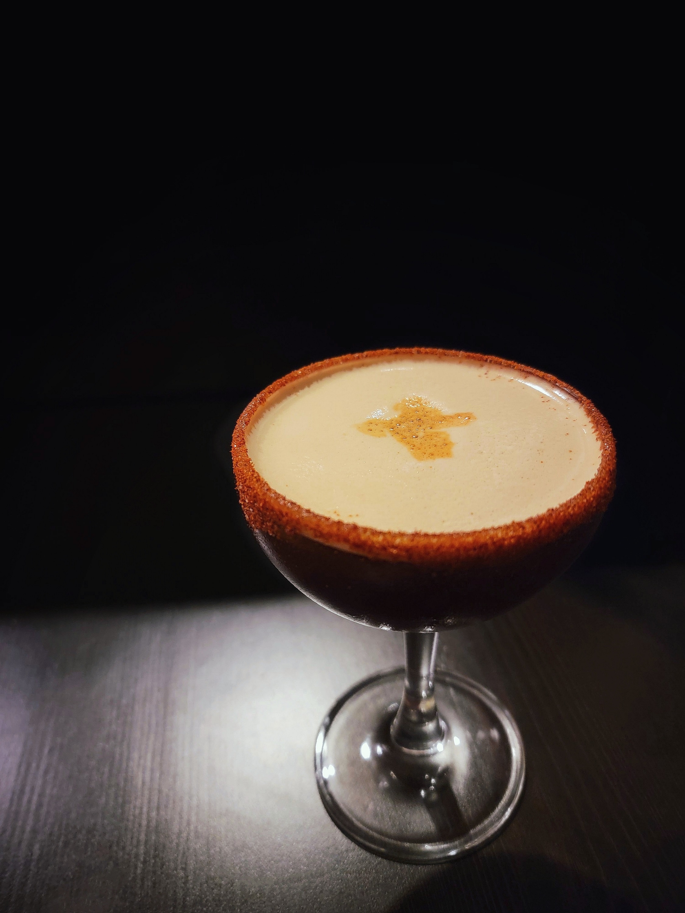 - Rim: Cocoa Bitters and 1/8-1/4 tsp each of Salt, Smoked Paprika, Cayenne Pepper based on spice preference.